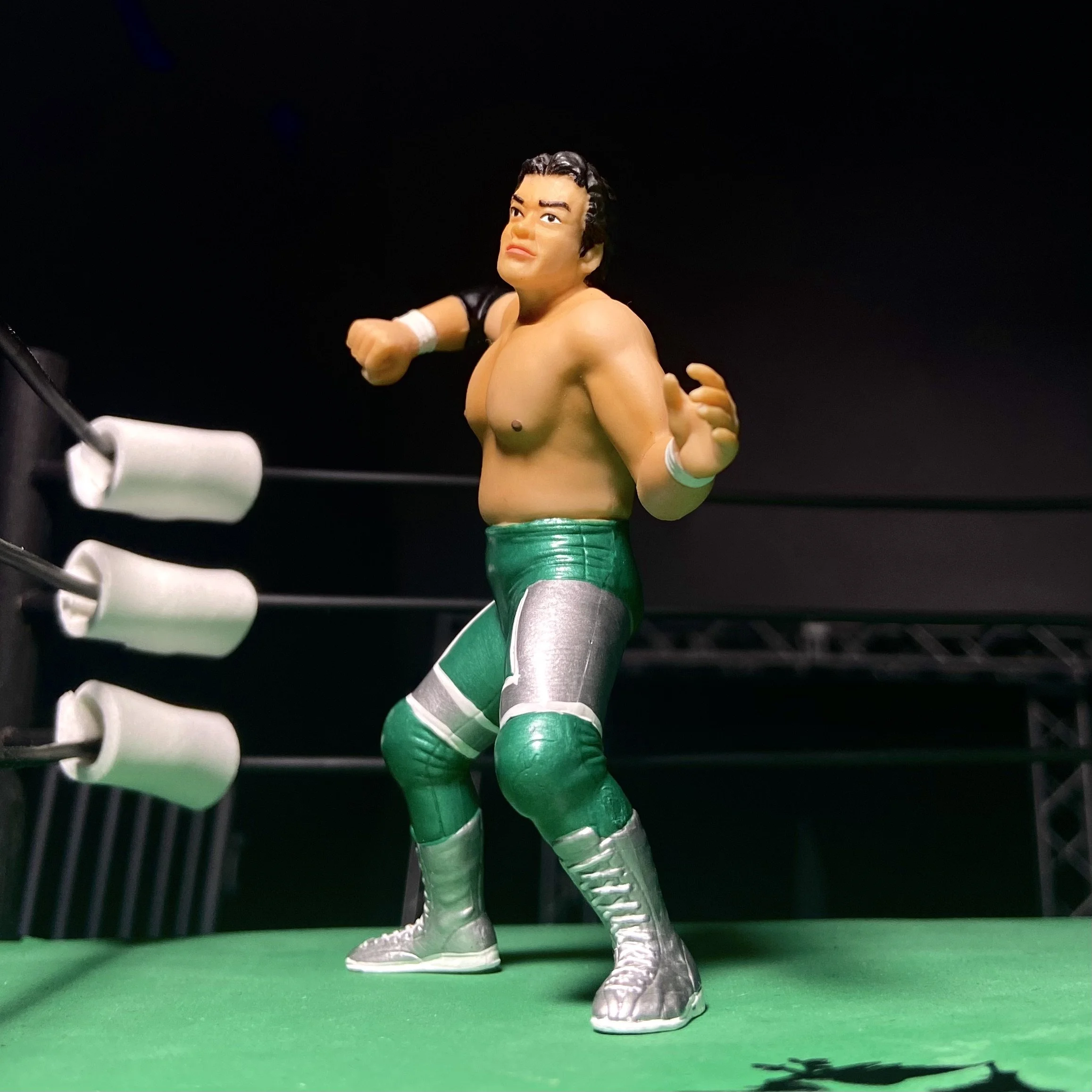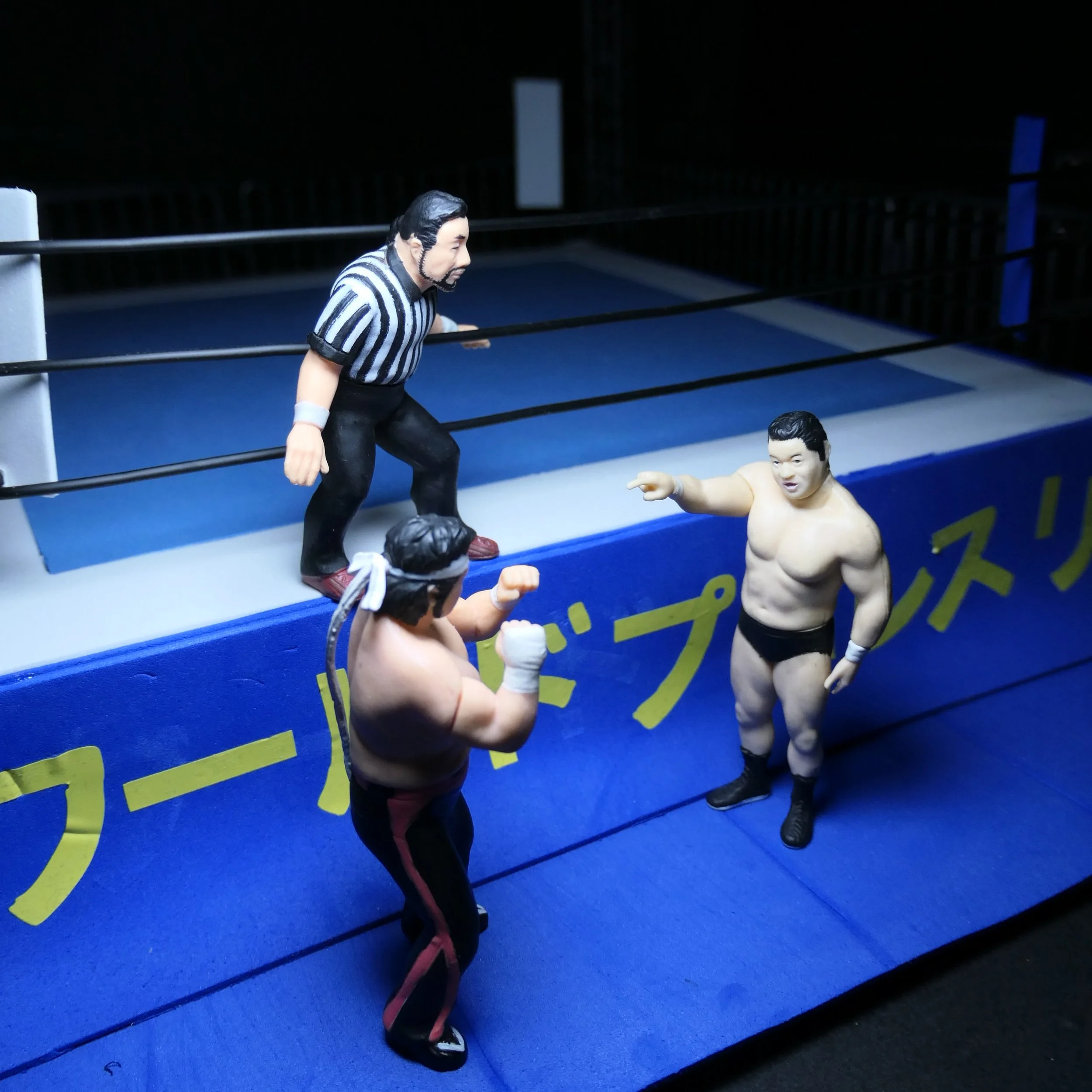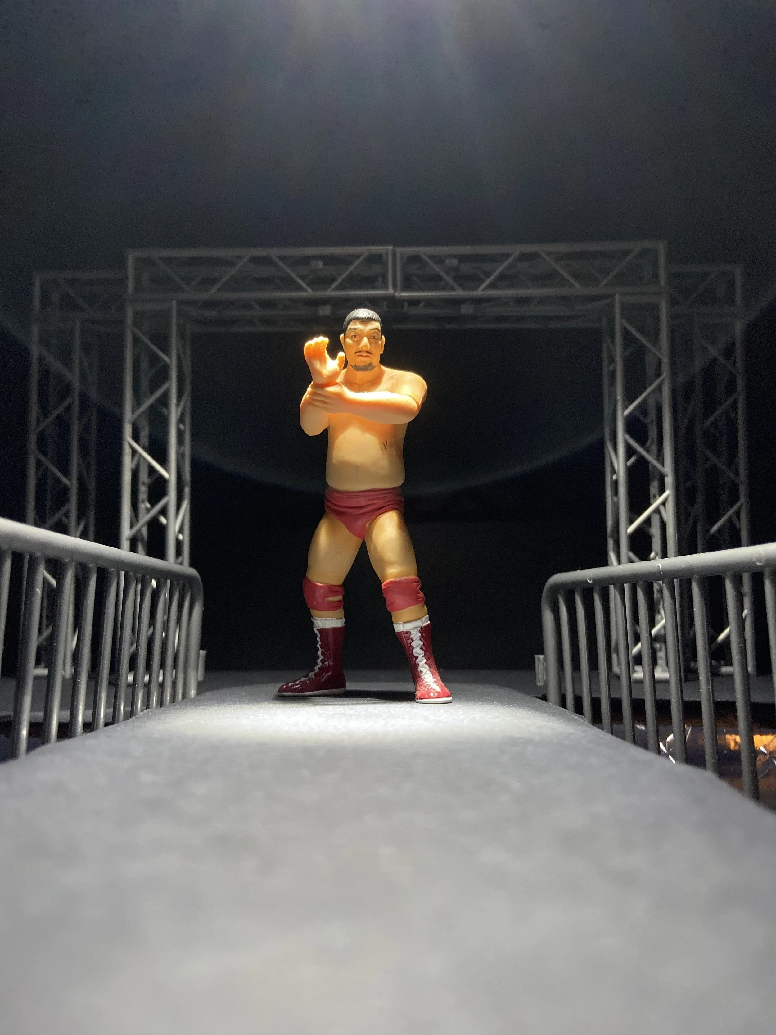 The rings you see throughout the imagery here were designed and handcrafted in New York City with the purpose of displaying the 3.75” Collection in as authentic of an atmosphere Wrestling fans would find at a live event.